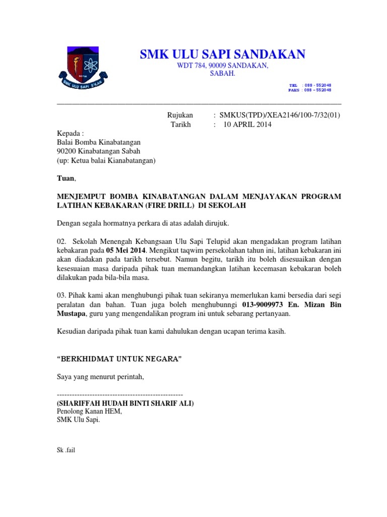 Surat Permohonan Mengadakan Fire Drill Pdf